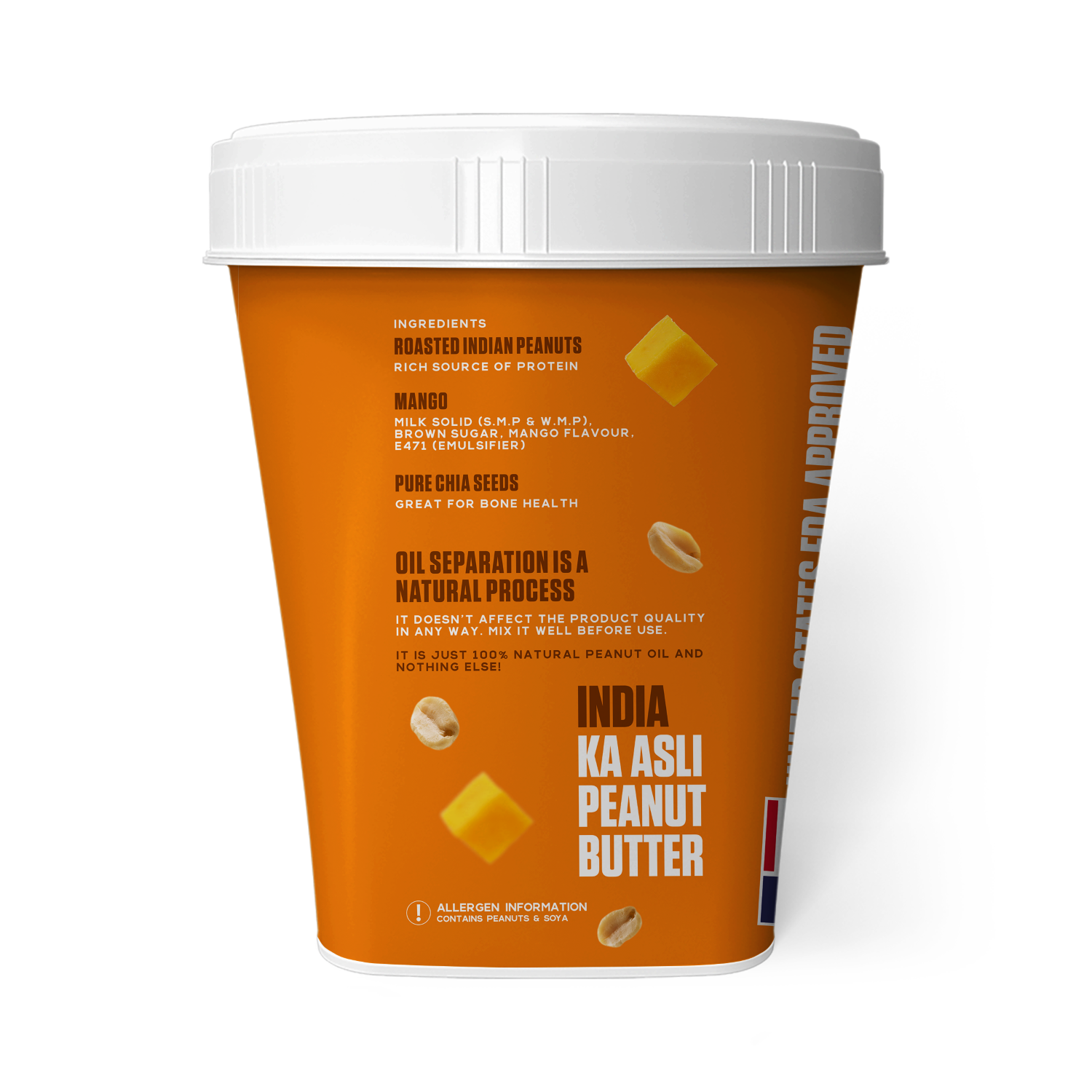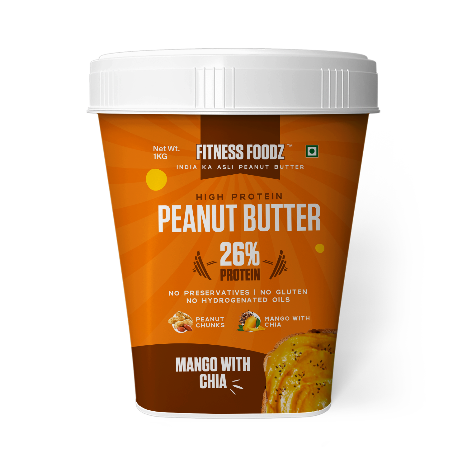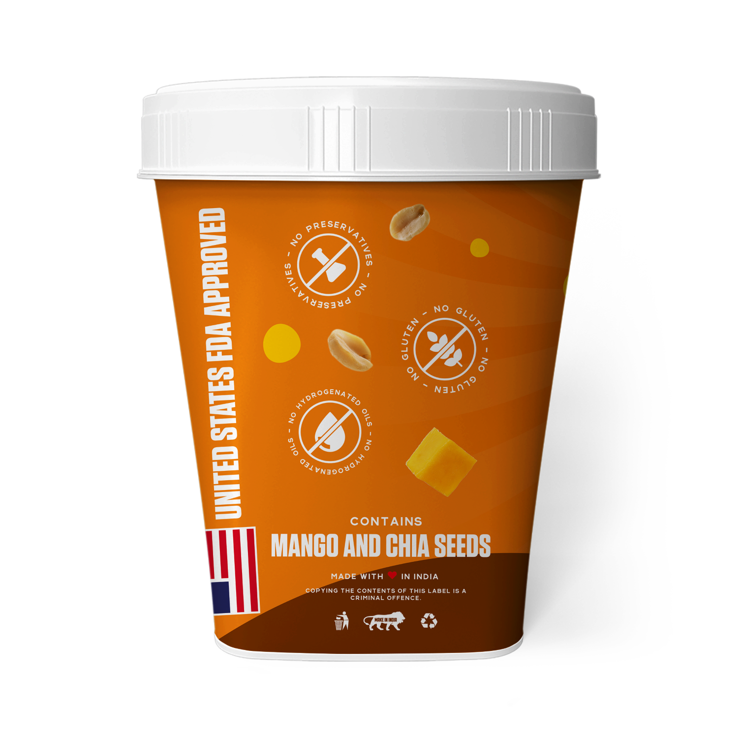 Mango With Chia Seeds Peanut Butter (Creamy, 1Kg) | 26% Protein | No Cholestrol | No Preservatives | No Hydrogenated oils