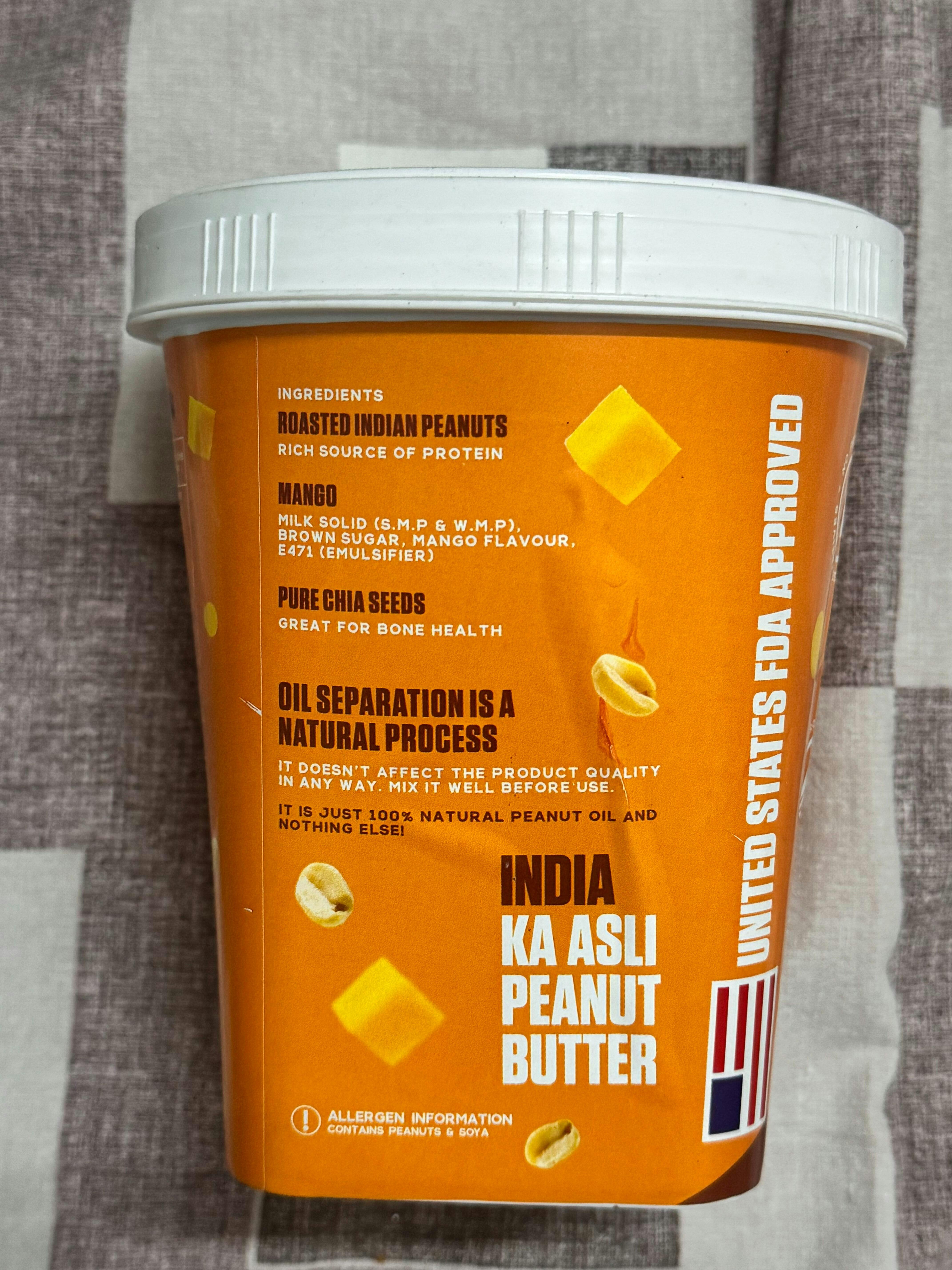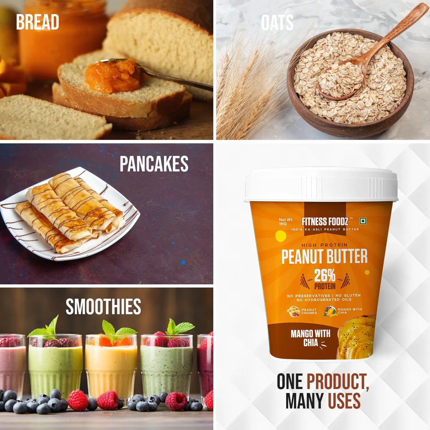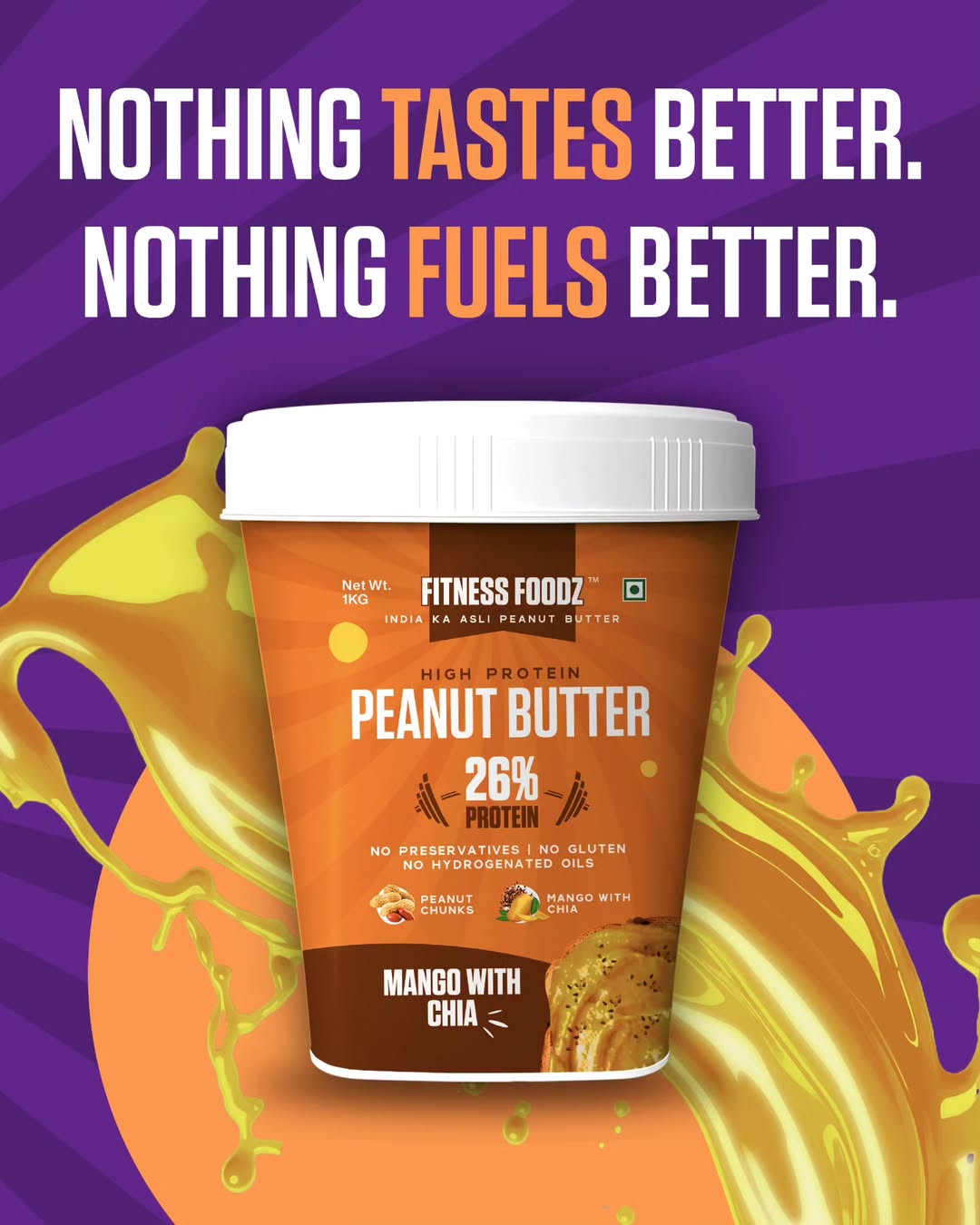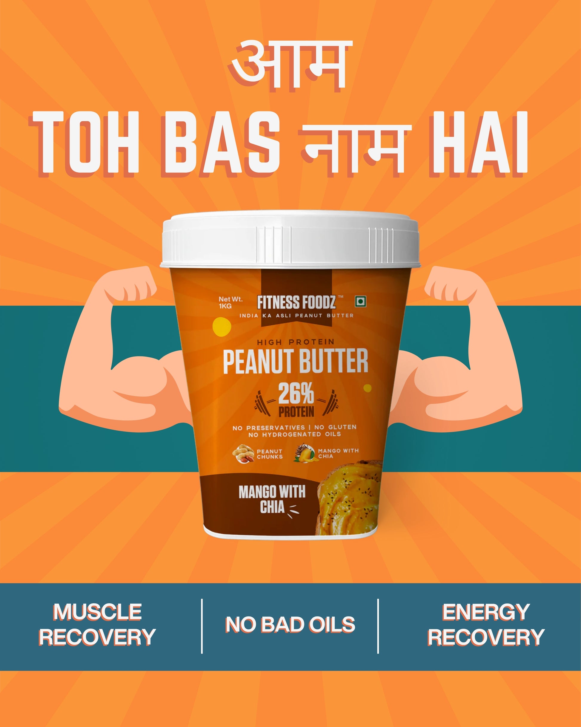 Mango With Chia Seeds Peanut Butter (Creamy, 1Kg) | 26% Protein | No Cholestrol | No Preservatives | No Hydrogenated oils