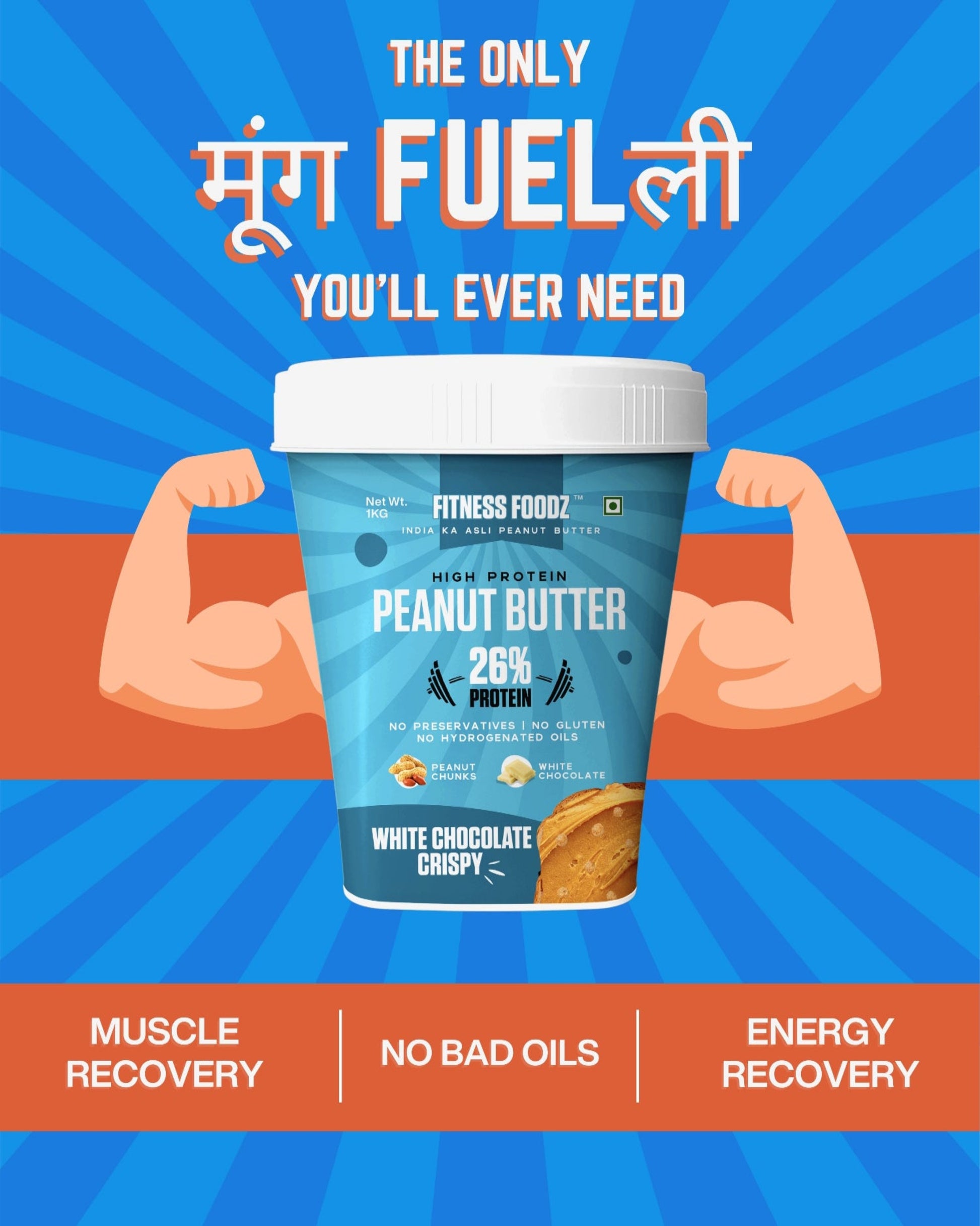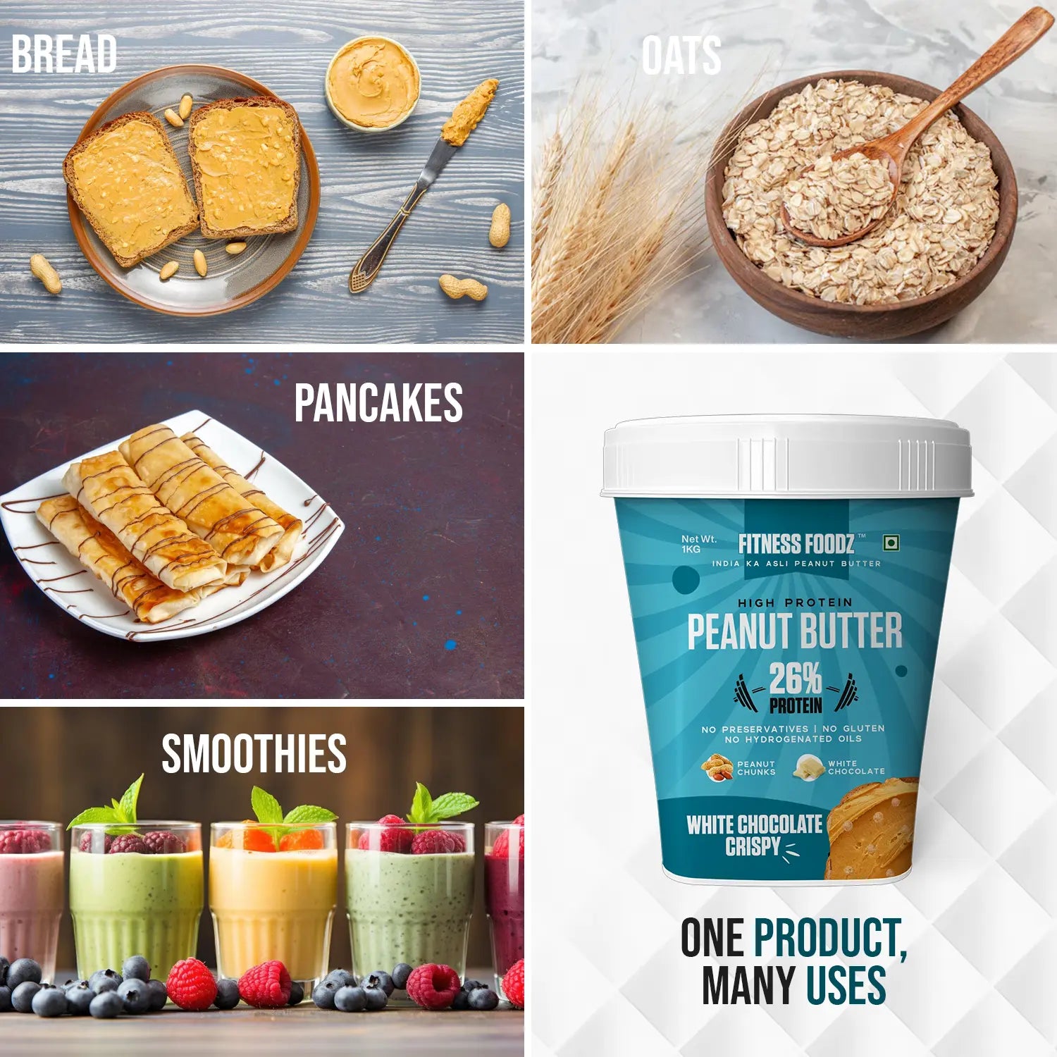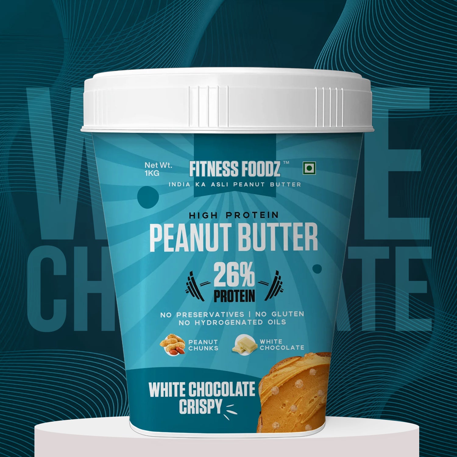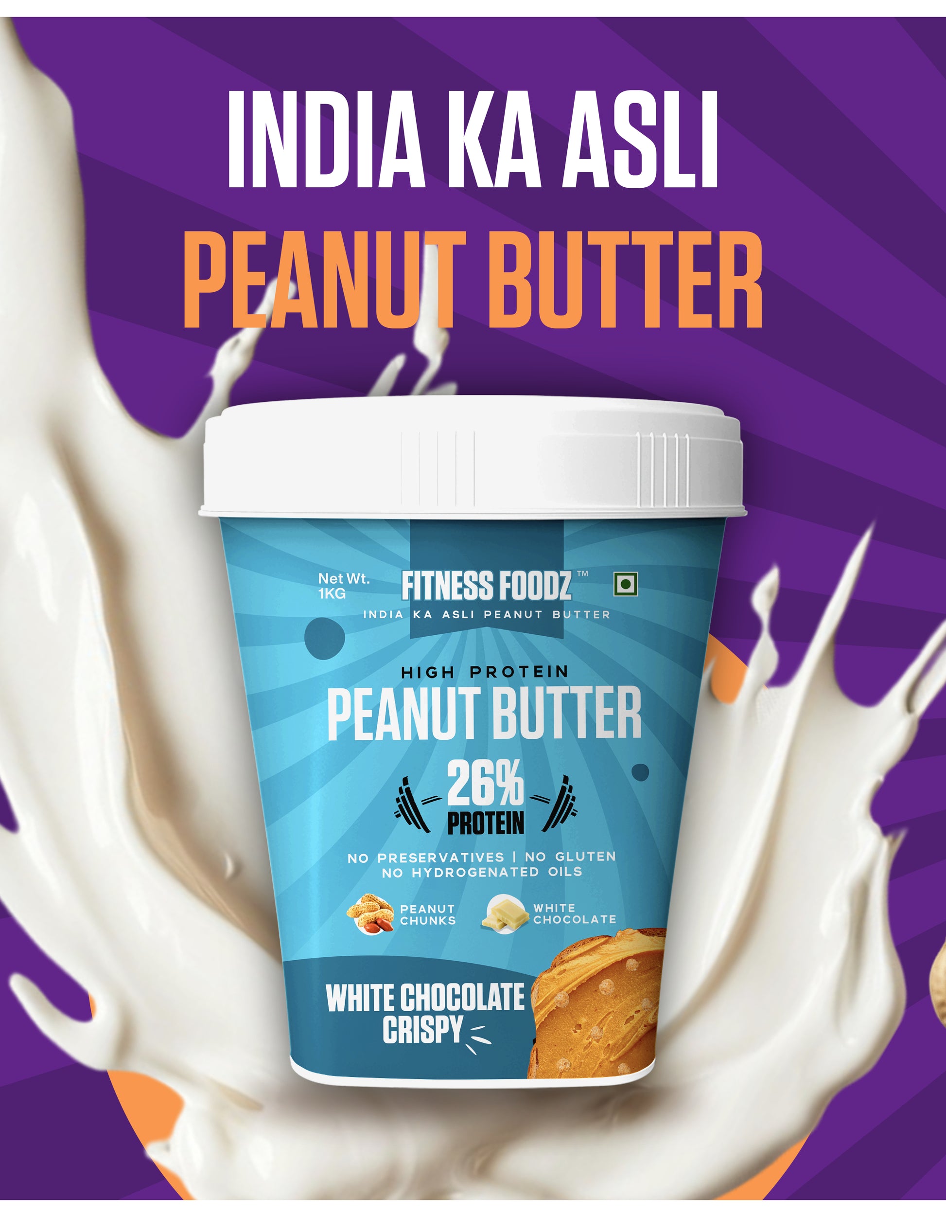 White Chocolate Peanut Butter (Crispy, 1Kg) | 26% Protein | No Cholestrol | No Preservatives | No Hydrogenated oils